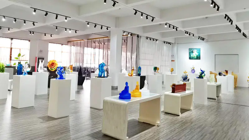 Glasskunstverkene har gradvis utviklet seg fra tradisjonelle håndverksgaver til å omfatte dekorative møbler, buddhistisk kultur, krystallservise og fasjonable smykker. Selskapets produksjonsbase ligger i den vakre og velstående vannbyen Jinxi i Kunshan, Jiangsu-provinsen. Den har et forsknings- og utviklingsrom for glassproduksjon som spenner over 35 000 kvadratmeter. Anlegget er utstyrt med uavhengige designevner, leiremodelleringsteknikker og teknologiske forsknings- og utviklingsressurser, som viser modne ferdigheter i både produktutvikling og produksjonsprosesser.