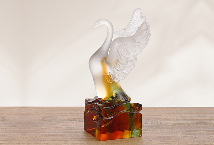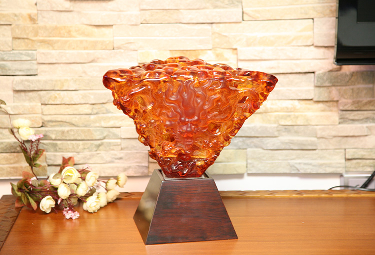 Glasskunstverkene har gradvis utviklet seg fra tradisjonelle håndverksgaver til å omfatte dekorative møbler, buddhistisk kultur, krystallservise og fasjonable smykker. Selskapets produksjonsbase ligger i den vakre og velstående vannbyen Jinxi i Kunshan, Jiangsu-provinsen. Den har et forsknings- og utviklingsrom for glassproduksjon som spenner over 35 000 kvadratmeter. Anlegget er utstyrt med uavhengige designevner, leiremodelleringsteknikker og teknologiske forsknings- og utviklingsressurser, som viser modne ferdigheter i både produktutvikling og produksjonsprosesser.