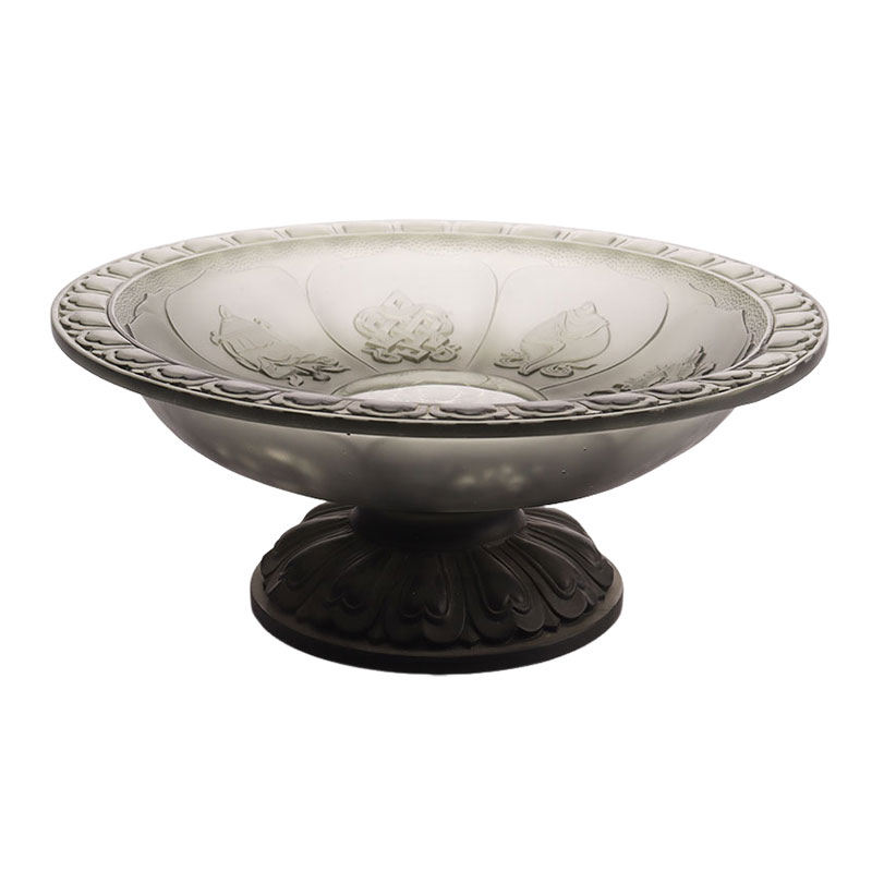 Denne fruktfatet i farget glasur er vakkert designet med relieffdekorasjoner på tallerkenen, som kan være blomster eller andre tradisjonelle mønstre, som øker fruktfatens kunstneriske verdi. Det er en delikat bunn i bunnen av tallerkenen, som ikke bare gjør fruktfatet mer stabilt, men også bidrar til den generelle skjønnheten. Fargede glasserte fruktfat er ikke bare praktiske for å holde frukt, men kan også brukes som hjemmedekorasjoner for å vise eleganse og edelt temperament. Fordi teksturen til farget glasur i seg selv er sprø, bør det utvises spesiell forsiktighet ved bruk og oppbevaring for å unngå kollisjon.