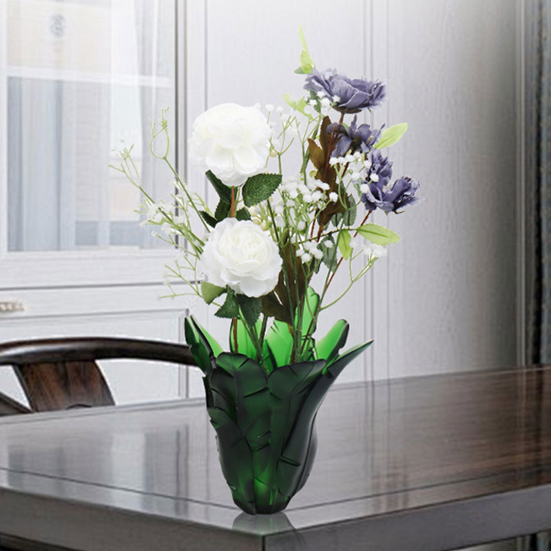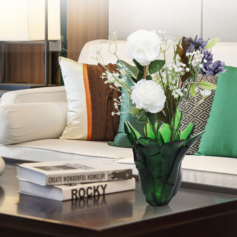 Hjem / Produkter / Krystallglass redskaper / Vase i krystallglass / Home Decoration Grønn Banana Leaf Glass Vase